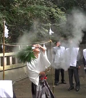三浦半島も湯立神楽(鎌倉神楽、湯花神楽、潮神楽とも呼ばれる)が盛んな地域のひとつです。ここで細かな演目について説明するよりも実際に見た方が良いでしょう。神奈川県神社庁(行政機関ではなく、県内の神社の団体)のホームページで各神社の祭礼などを検索できますので、お近くの湯立神楽を探してみてください。検索後に直接神社に問い合わせれば確実な日程がわかります。三浦半島の湯立神楽は一年をとおして各地で行われており、ケガレを払う機会に恵まれているといえます。(民俗学担当 瀬川)