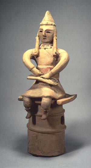 琴といえば、着物の女性が指に付けた爪で弦を弾き、優雅な調べを奏でているイメージを持つ方が多いでしょう。しかし、今から1500年前頃の古墳時代ではかなり様子が違っていたようです。古墳時代には埴輪がつくられていますが、このなかには琴を弾く人物の姿もみられます。ただし、確認できるのはすべて男性です。