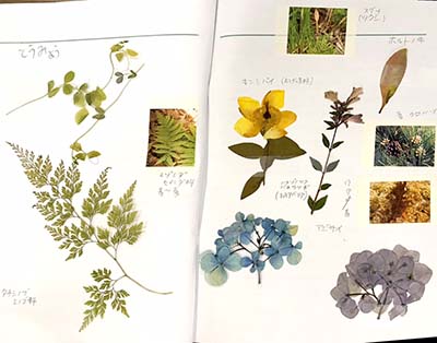さいごに、身近な植物の押し葉、押し花をつかって自由に図鑑をつくりました。図鑑のタイトルも自分で考えてもらい、オリジナルの植物図鑑を完成させました。(植物学担当:山本)