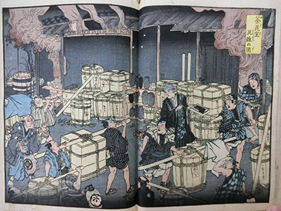 (「荼毘室混雑の図」(『安政箇労痢流行記概略』(国立公文書館所蔵))