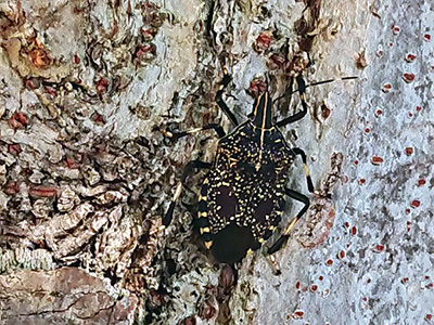 図3「ケヤキの幹にとまるキマダラカメムシ」