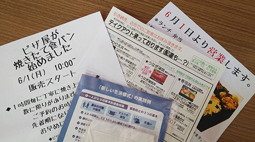 数年後、今回の「新しい生活様式」で提唱されたことのなかで、どれが定着しているのかは大変興味深いところです。個人的にはやはり、オンライン上の会食よりも対面での会食のほうが楽しく感じます。新型コロナウイルス対策が万全となった後、どのような生活様式になっていくのかを考えるため、一部の博物館では新型コロナウイルス関連の資料収集をはじめています。当館でも、新聞記事はもちろん、出前やテイクアウトをはじめました!というチラシを少しずつですが集めています。(民俗学担当:瀬川)