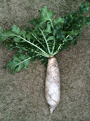 三浦半島の農業は、明治期以降、さまざまな試行を繰り返しながら発展してきました。それらの商品作物の代表として、三浦ダイコンをあげることができるでしょう。三浦ダイコン(図 1)の特徴は、根の中央が膨れている「中ぶくら」とよばれる形態です。