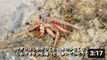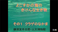 小学校高学年向け。博物館で上映している「ミニシアター干潟の生き物」のダイジェスト版で、チゴガニ、コメツキガニ、などのカニ類のほか、アサリ、バカガイなど潮干狩りでおなじみの二枚貝など、三浦半島で見られるユニークな干潟の生き物たちを生態映像で紹介しています。