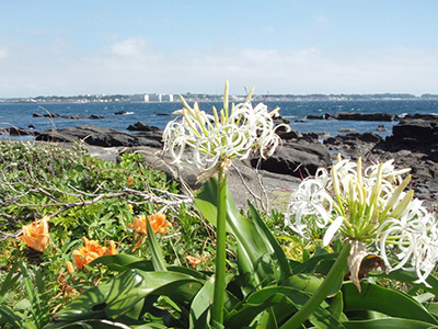夏の花のハマユウとハマカンゾウの花期はもう終わってしまいましたが、