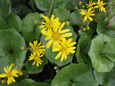 秋から冬は花の少ない時期ですが、11月上旬に咲き始めたツワブキの花は冬の間もしばらく楽しめます。