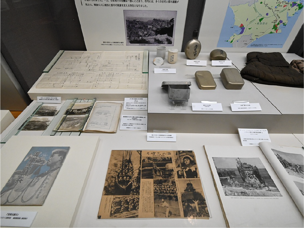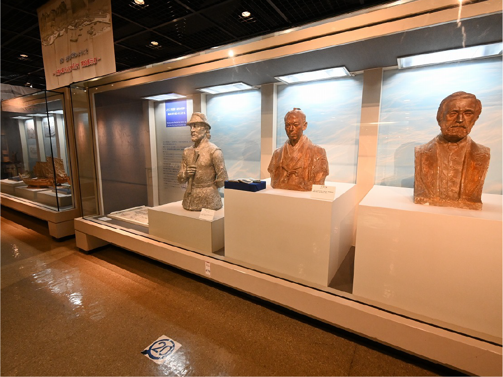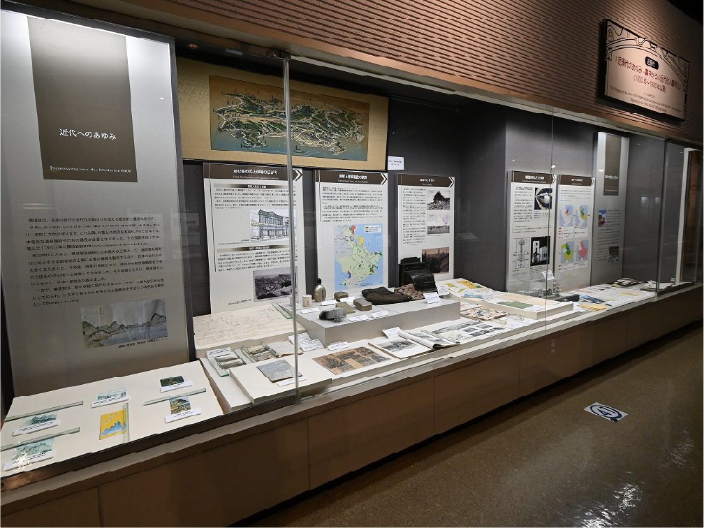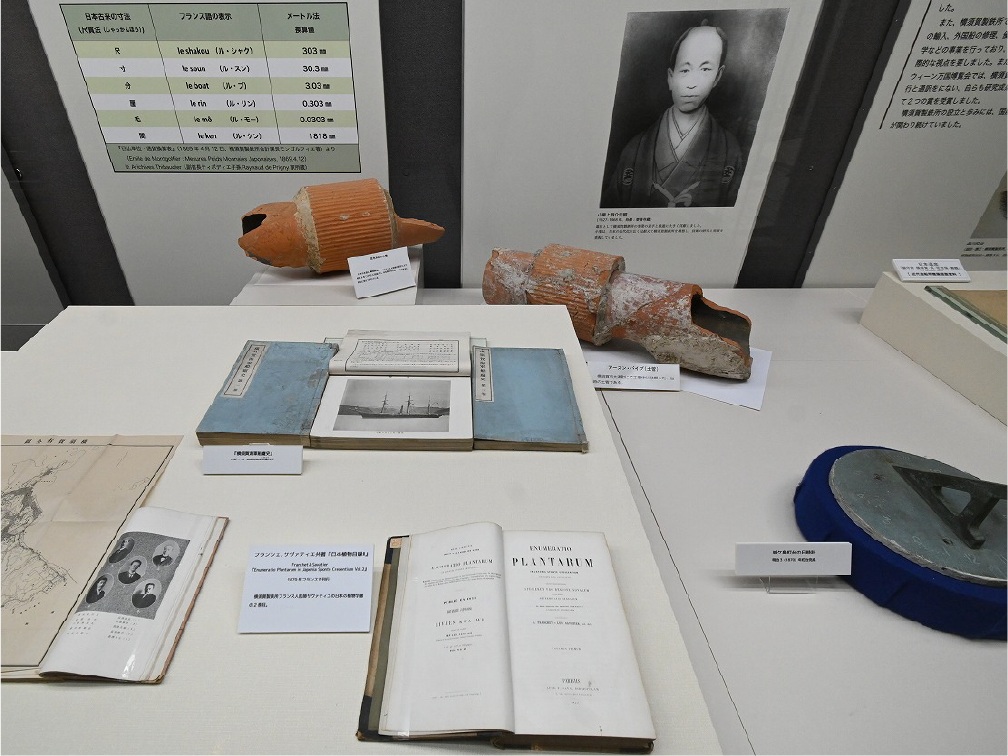 人文館 2階 トップページ>常設展示>人文館 2階 人文館 2階 江戸時代から現代までの三浦半島の歴史と民俗を展示しています。昔の船や漁師の家など大きな展示物が見どころです。江戸時代以降、浦賀には重要な湊が置かれ、幕末にはペリーが来航、その後、横須賀製鉄所が開設されました。これらの日本史上でも有名な歴史に加えて、横須賀の都市化と暮らしの変化を物語る資料を展示しています。 17 ~ 19 世紀の和洋船と浦賀-海を切り拓いた人たち 村の暮らしと三浦半島 しめかす小屋 江戸時代の漁師の家 ペリーの来航から横須賀製鉄所へ 横須賀製鉄所のあゆみと日本近代化への貢献 近現代のあゆみー幕末からの近代化と都市化 映像展示コーナー 詳細一覧 17 ~ 19世紀の和洋船と浦賀ー海を切り拓いた人たち 海を切り拓いた人々として、安針塚で知られるウィリアム・アダムス、横須賀製鉄所を成功に導いた小栗上野介忠順とフランソワ・レオンス・ヴェルニーの 胸像を展示室の入り口に展示し、皆様をお出迎えしています。 横須賀の発展には海が大きく影響しました。江戸幕府の重要な湊みなとがおかれ、三浦半島の中心地となった「浦賀」と出入りした船など、 江戸時代の歴史を紹介しています。 村の暮らしと三浦半島 海に囲まれ平地が少ない三浦半島では、漁業と畑作で村の暮らしが成り立っていました。特に盛んだったイワシ漁について、地引網船( じびきあみせん) の 断面を見ながら学べる展示は大変めずらしいものです。国指定の文化財になっている漁師のハレ着やタコ漁の展示もあります。 イワシはカツオ漁の生き餌( いきえ) として利用されましたが、畑の肥料としても使われました。畑では、麦やイモなどを栽培していましたが、 余裕のある家は木綿栽培( もめんさいばい) もしていました。 昔の道具は、個人の体格や細かい用途にあわせて作られており、身をもって自然を相手にしていた村の暮らしが浮かんできます。 しめかす小屋 油の多いイワシを原料にして、干鰯(ほしか)という肥料が17世紀から19世紀にかけて三浦半島や東京湾岸・房総半島にかけてたくさん作られました。 また、イワシを大きな釜で煮て、油をしぼりました。これも肥料などにつかわれましたが、残った骨もしめかすといって、肥料でした。 これらは関東地方だけでなく関西地方へも売られましたが、その問屋(とんや)が東浦賀[現横須賀市東浦賀町]にたくさんあり、栄えました。展示してあるしめかす小屋は、東日本でもっとも古い形をつたえるめずらしいものです。 江戸時代の漁師の家 ぺリー来航の11年前、天保(てんぽう)13年[1842年]に横須賀市佐島に建てられた漁師の家を博物館に移築しました。この家は「九尺三つ取り(きゅうしゃくみつどり)」と言われ、ニワ[土間(どま)]、ザシキ、オクがそれぞれ9尺[約2.7m]の幅を持って建てられた田の字型の住居です。佐島の漁師にとって「九尺三つ取り」の家に住むことは、一人前の証しとされていました。 実際に使われていた家なので、所々に昔の面影が感じられます。縁側(えんがわ)に座りながら地引網船(じびきあみせん)や大きな生け簀(いけす)を眺めるのも味わい深いものです。 ペリー来航から横須賀製鉄所へ 1853年(嘉永6年)、ペリーが浦賀に来航したのち、久里浜に上陸し、日本の開国に大きな影響を与えました。当館には、ペリー来航のようすを知ることのできる絵巻物がたくさんあり、映像と実物展示で紹介しています。 ペリー来航をきっかけに、日本は開国し、1860年(万延元年)にアメリカと条約を結ぶために遣米使節が派遣されました。使節団はアメリカの造船所を見学し、日本に最先端の造船所を建設することを決意します。これが横須賀製鉄所です。使節団の一員として活躍した小栗上野介忠順は、帰国後に、横須賀製鉄所の建設を実現させ成功に導きました。さらに、使節団の代表を務めた新見豊前守正興の愛用品なども当館に所蔵されており、これらもあわせて展示しています。 横須賀製鉄所のあゆみと日本近代化への貢献 横須賀製鉄所は、江戸時代末期につくられた造船所で、当時の日本で最大の工場でもありました。ここには、西洋の最先端の技術がとり入れられ、日本の近代化に大きな影響を与えました。ここに伝わった技術には現在も使われているものがたくさんありますし、優秀な人材も育ち、全国で活躍しました。横須賀製鉄所は、日本の近代化を考えるうえで極めて重要な施設であり、当時の設計図の原本や建築模型などを幅広く展示しています。 近現代のあゆみ-幕末からの近代化と都市化 幕末から現代までの歴史と街の移り変わりを広く紹介しています。横須賀は、幕末に横須賀製鉄所が開設され、明治時代からは陸軍と海軍の拠点がおかれて、都市化が急速に進みました。さらに、これを契機に最先端の技術導入の舞台となり、日本の近代化を大きく支えました。これら、都市化と近代化を物語る史料とともに、大正時代の関東大震災や戦争の歴史