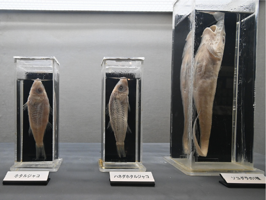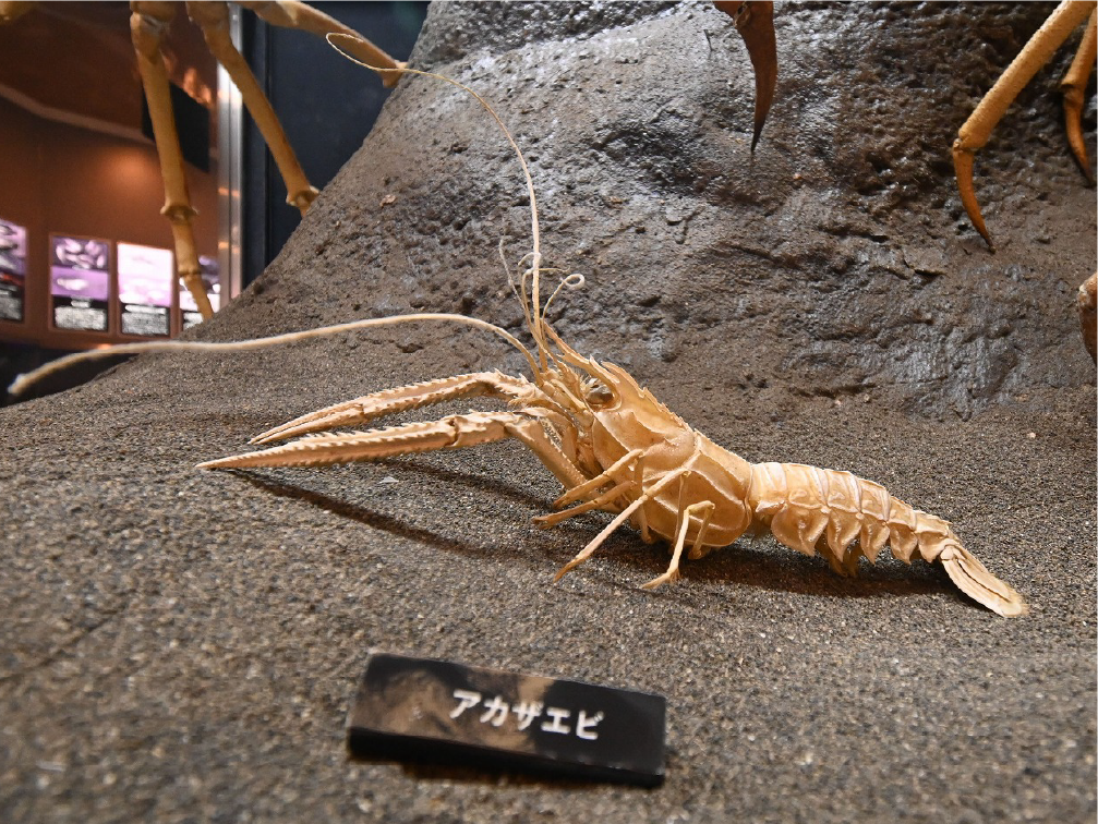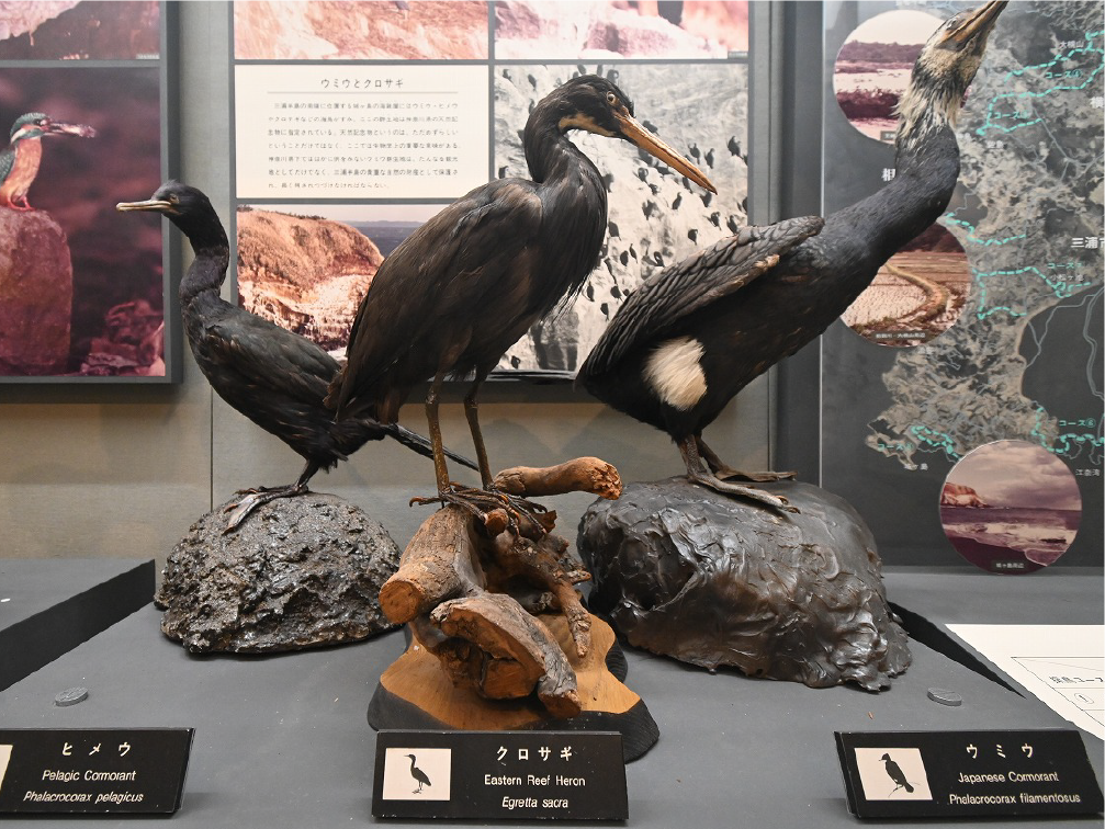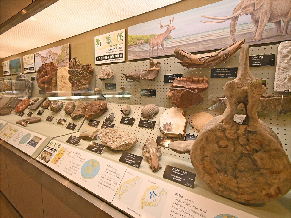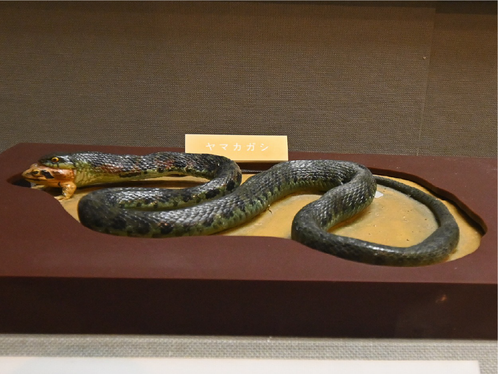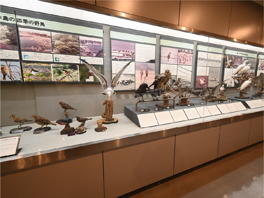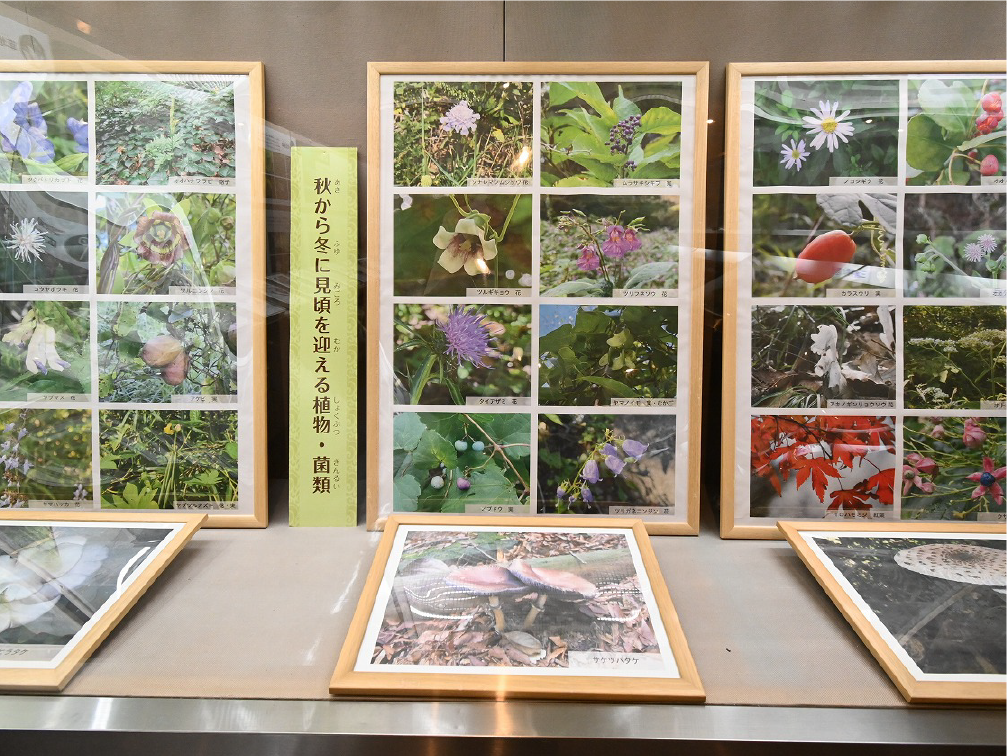 自然館 1階 トップページ>常設展示>自然館 1階 自然館 1階 おもに三浦半島の生き物を紹介しています。「植物」、「昆虫」、「海辺の生物」、「魚類」、「鳥類」、「哺乳類」などの展示があります。地質時代の化石を展示した「生命の歴史」、大型の鉱物を展示した「美しい石」もあります。ホタルやホタルイカなどの「発光生物」の展示は、当館の展示の特色です。 岩石壁面 生命の歴史 美しい石 植物 海の生物 三浦半島の哺乳類 三浦半島の哺乳類 魚類 鳥類 両生・は虫類 有毒・有害な生物 昆虫類 陸の発光生物 海の発光生物 深海の生物 詳細一覧 岩石壁面 私たちの身の回りには、さまざまな岩石が石材として使われています。2階から1階への階段の壁面には、大谷石 (おおやいし) や浮金石 (うきがねいし) などの石材が、装飾を兼ねて展示されています。 生命の歴史 約46億年の地球の歴史の中で、多様な生物が出現したのは古生代 (約5億4,000万~2億5,000万年前) になってからです。古生代には三葉虫や魚類が栄えました。中生代 (約2億5000万~6500万年前) にはアンモナイトや恐竜を代表とするは虫類が栄え、新生代 (約6500万年前~現在) になると哺乳類と被子植物が繁栄しました。 このコーナーでは古生代の三葉虫やフズリナ (有孔虫)、中生代のアンモナイトや首長竜 (エラスモサウルス類)、新生代のデスモスチルス (哺乳類) など、地質時代を代表する化石を展示しています。 美しい石 岩石をつくる鉱物のうち、形や色がきれいなものは宝石として用いられることもあります。 このコーナーでは紫水晶や黄鉄鉱、メノウなど、美しい鉱物を展示しています。 植物 三浦半島の野生植物は、1700~1800種類ほどで、森林の植物と海岸の植物にその地域的な特色がもっともよく表れています。森林植物は馬堀自然教育園で、海岸の植物は天神島臨海自然教育園でいつでも見ることができます。 特にフウトウカズラ、ハマボウ、ワダン、タシロランは三浦半島の照葉樹林や海岸に生育する代表的な植物です。 森の植物として、ミズキ、ヤアツツジ、ミヤマウズラなどの生態写真、ヤブコウジ、クサギなどの標本、海岸の植物としてハマカンゾウ、スカシユリなどの生態写真、ハママツナ、ホソバノハマアカザ、コウボウムギなどの標本が展示されています。中央には113種の植物画が波打ち際から山頂までの植物相の変化を表現しています。 海の生物 磯や干潟には、イソギンチャクやサンゴなどの刺胞動物、エビやカニなどの節足動物、巻貝や二枚貝などの軟体動物、ウニやヒトデなどの棘皮動物など多様な動物が生息し、海藻や海草などの植物も生育しています。これらの生き物を見られる環境や水深ごとに標本や写真で紹介しています。 また、相模湾で見られる美しいウミウシ類の生態写真も展示しています。 三浦半島の哺乳類 現在の三浦半島には大型の野生哺乳類は分布していないため、展示はホンドタヌキ、キュウシュウノウサギ、ネズミ類、コウモリ類など、中・小型の哺乳類のはく製標本が中心となっています。また、近年急速に生息数を増やしている外来生物のアライグマとタイワンリスのはく製標本や、間違えやすいアライグマとタヌキの見分け方も紹介しています。 魚類 三浦半島は東京湾と相模湾の異なった環境の海にはさまれ、たくさんの魚が見られます。 このコーナーでは、めずらしいシノノメサカタザメをはじめ、マダイ、ブリ、スズキなど身近な魚、サザナミヤッコ、テングダイ、カゴカキダイなど美しい魚などのはく製標本をご覧いただけるほか、三浦半島の外来魚の写真、古代魚シーラカンスのレプリカなども展示しています。 鳥類 三浦半島では一年中見られる鳥(留鳥)のほか、季節によって飛来する渡り鳥が見られます。 このコーナーでは、城ケ島の集団越冬地が県の天然記念物に指定されているウミウ、ヒメウや、身近に見られるハシブトガラス、ハシボソガラス、ヒヨドリ、コサギなどを常設でご覧いただくほか、四季折々に見られる鳥を季節に合わせて入れ替えています。 両生・は虫類 両生類はカエル、イモリ、サンショウウオなどのなかま、は虫類はヘビ、トカゲ、カメなどのなかまです。三浦半島の両生・は虫類には数が減ってしまった種が多く、トウキョウダルマガエルは姿を消し、イモリ、トウキョウサンショウウオ、ウミガメ類なども絶滅の危機にあります。このコーナーでは、はく製標本とレプリカで両生・は虫類を紹介しています。 有毒・有害な生物 野外で自然に親しみ、動植物の観察や景観を観賞することは、心や体に活気を取り戻してくれる楽しい時間です。しかし、自然は人間だけのものではありません。多種多様な動植物が暮らしています。中にはヒトを有害な敵とみなしておそってくることもあります。人間がうっかり触ったり、巣を壊したり、近づきすぎたりると、思わぬ攻撃にあい、刺されたり、かまれたりします。このコーナーでは三浦半島で出あう可能性の高い、そ